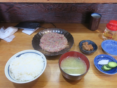 11:19 アジのなめろうは アジのなめろうのアップ。(笑) アジのなめろうは今さら書くまでもありませんが、アジを味噌とかネギなどの薬味を合わせて、粘りが出るまで叩いたもので、房総半島の郷土料理とされています。 このアジのなめろう、単品で注文したんですが、量がすごいや。 多分4匹分くらいはあるんじゃなかな。 注文するときに、「半分で出来ませんか。」って聞いてみましたけど、半分はやってませんでした。 |