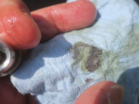 9:14 鉄粉が マグネット部分をウェスで拭き取ると、鉄粉が付着しますね。 一番最初の頃に比べると、グッと減ってます。 メインはクラッチからの鉄粉だと思いますが。 |
