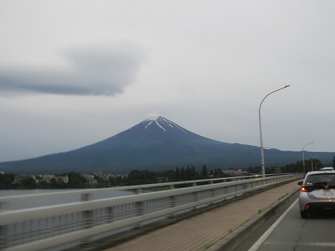 18:38 くっきり ほうとう不動を出発して河口湖大橋を渡ります。 富士山くっきり。 山頂までちゃんと見えるので、まとまった雨が降ることはなさそうです。 |