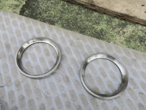 15:06 アウタ レースの新旧 新旧のアウタ レースを並べてみました。 一目瞭然。 使っていた方は、ベアリングが当たっていたところに跡が付いてますが、新品は表面がきれいです。 |