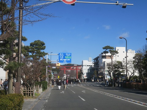 11:37 若宮大路へ JR鎌倉駅から真っすぐ歩くと50m程で若宮大路に出ます。 正月三箇日の日中、この通りは一般車進入禁止なので、半分歩行者天国ぽくなっています。 ただし、タクシーは入ってこられるみたいなので、不用意に車道を歩いてタクシーに引かれても知りませんよ。 |