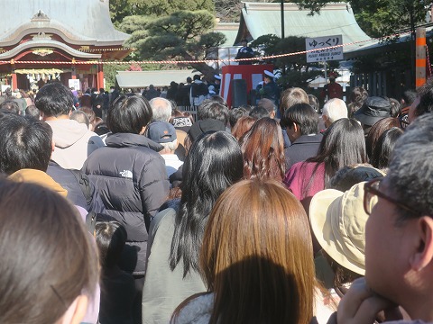 11:53 前に進まない 笑い事じゃないよ。 全然前に進みません。 こんなに混んだかな? 自分が前回初詣に来たのは、たぶん半世紀も前の話ですが・・・・・。 |