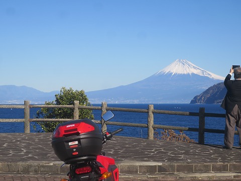 10:07 御浜岬(みはまみさき)を眼下に 県道17号線に入り北上を続け、戸田の市街地の手前までやってきました。 西伊豆を走ると毎度の写真になっちゃいますが、御浜岬を眼下に望む場所から富士山をバックに。 駐車スペースがほとんど無いので、クルマを駐めての撮影は難しいです。 日陰になっちゃっているけど、ちっちゃいGROMならでは。 自分のお気に入りの撮影スポットの一つ。 |
