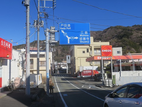 10:13 戸田三叉路から さらに北上して、戸田の市街地の中心にある戸田三叉路をそのまま直進。 大瀬崎方面に進みます。 今日は太平洋側のこの地域は冬の気候ならでは。 空気が澄んで快晴、雲一つありません。 |