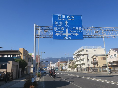 9:37 国道1号線から国道135号線に 大磯漁港からは、国道1号線を西走します。 この辺りは箱根駅伝のコースで小田原市内に入り、東伊豆の海岸線を走る国道135号線との交差点が近づいてきました。 大磯からの小田原までの国道1号線はね、ほぼ片側1車線。 交通量も多くて、信号機も多くて、退屈な路線です。 じっと、ガマンで移動に徹します。 この先の交差点は左折して、国道135号線に入ります。 |