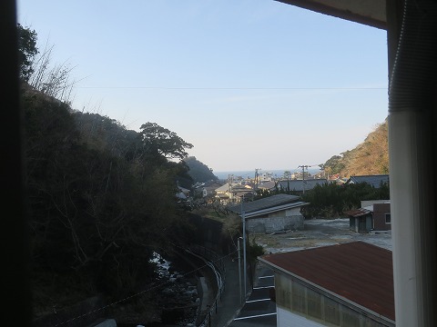 16:04 雲見温泉は 窓からの景色。 雲見の温泉街は海からは近いんですが、写真で分かる様に谷間にあります。 そのため、意外にも海から近くても海が見える宿は少ないんですよね。 (これまで、自分が泊まった数少ない経験からの話です) ここさかんやさんは、市街地の奥の方にあり少し高台になっているので、自分が泊まった部屋からは海を眺めることができます。 少し贅沢です。(笑) せっかく早めに着いたので、荷物を片付けたら、さっさか温泉に行くことにしましょう。 |