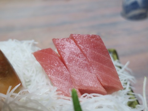 18:13 マグロは 刺身の盛り合わせに載っているマグロ。 良いのが盛ってありました。 静岡県はマグロの水揚げ量日本一なので、それに合わせているのか消費量も日本一です。 |