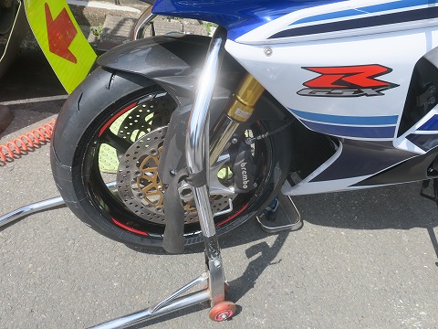 10:37 タイヤ交換 3月23日のK2Y千葉県内ツーリングでGSX-Rのタイヤがほぼ終わりになりました。 ゴールデンウィークはロングツーリングに行く予定なので、その前にタイヤを交換しておきます。 おニューのタイヤでいきなり遠くにロングツーリングって言うのも、ちょっと不安なので、ちょっと早めのこのタイミングで交換して、近場のツーリングを1本が走れるこのタイミングで交換したいですね。 まずは恒例の、車庫からGSX-Rを引っ張り出して、青空ガレージ。 カラーコーンがあるのは、現在平日道路で工事をしているためで、自分じゃありませんよ。(笑) |
