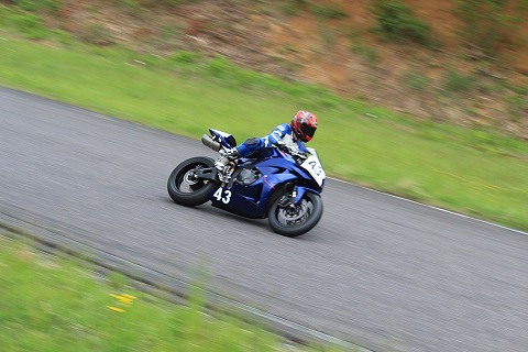 11:52 1周目 レース始まりました。 これは1周目の9コーナー(便所前のヘアピン)。 レースはスタートに失敗しました。 ので、1コーナーに入った時は5番手くらいに落ちちゃいました。 冬の間、エンジンのオーバーホールに出したんですが、戻ってきてからクラッチレバーのお遊びの調整をするのを忘れていました。(汗) クラッチレバーが遠くて、エンジンが回り過ぎていて、クラッチミートしたらウイリー。(笑) フロントが浮いちゃったので、アクセル戻したら、抜かれちゃいましたね。 |