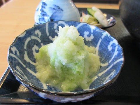 11:53 辛味大根は 辛味大根は、お隣の富士見町で獲れたもので、緑が強くさわやかな味だそうです。 たしかに、緑が濃いですね。 |