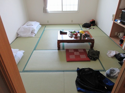 バイクを駐めて、荷物だけ置かせてもらおうと考えていたら、部屋に入ってイイとのこと。