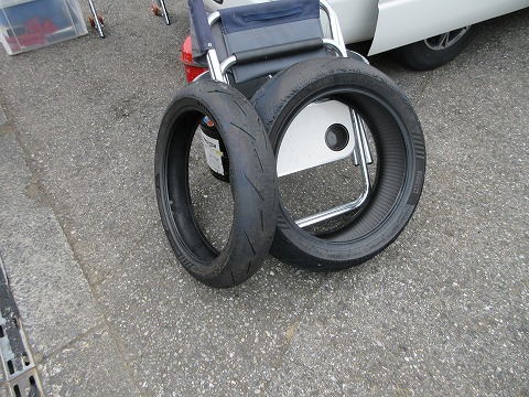 10:36 廃タイヤを処分 新しくブリヂストンのR11を履いたので、外したPirelliは廃タイヤに。 タイヤサービスに持っていてて引き取ってもらいます。(もちろん有料) |
