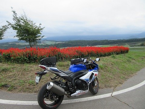つまごいパノラマラインを南西に走り花が植えられているところがあるので、バイクを駐めて写真を撮ります。