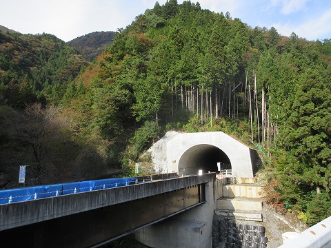 14:01 青崩峠トンネルは 兵越峠から浜松市道水窪白倉川線を7kmほど下ると国道152号線に復帰します。 右手に現在建設中の青崩峠トンネルの静岡県側の坑口が見えます。 青崩峠トンネルの延長は4,998mと5,000mにわずか2m短いだけです。 道路トンネルの場合、5,000mを越えると法律でタンクローリーなどの危険物積載車の通行が出来なくなります。 そのため、線形や坑口の位置など色々と工夫をして、出来るだけ5,000mを切るように設計し建設されているトンネルが多いです。 確認したら、現在日本には5,000mを越える一般用の道路トンネルは17本あるみたいです。 |