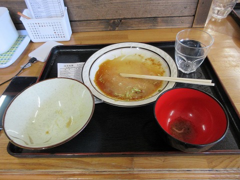 11:33 少し待った ちょっと待ちましたね。 20分くらい。 焼肉定食の焼肉は、料理する人が1人で、フライパンで1度に2人前(?)くらいしか調理できないので、正直回転が悪いんです。 そして、焼肉定食(中盛)がこちら。 焼肉とゴハンに、みそ汁じゃなくて暖かい半(?)うどんが付きます。 「大盛りにしてもよかったな。」(笑) これをうどんを普通サイズで注文している人もいました。 普通サイズにすると、ガッツリ食べられますね。 |