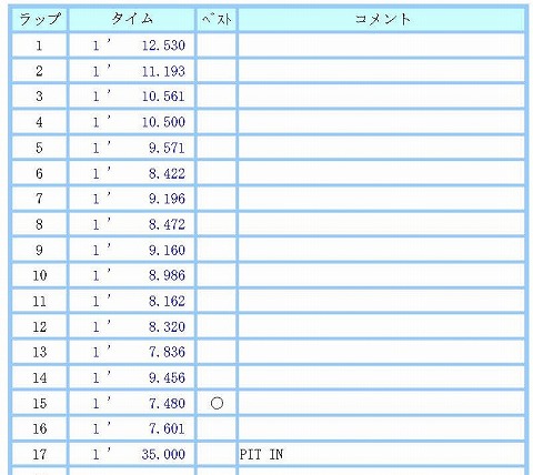 8:00〜8:20 B1クラス 8時になって今日1本目の走行のコースイン。 タイヤを今年の7月から今まで使ってきたPIRELLIのDIABLO SUPERCORSAからブリヂストンのR11に変えました。 ST600クラスのタイヤが2015年にワンメイクになりました。 初期のころはブリヂストンのR10でしたが、このタイヤが寒くなるとグリップしなかったそうです。 もともと、参加者のコスト削減のため、ある程度の耐久性を持たせたんですね。 なので、4耐用のタイヤを転用したとかしないとか。うわさ話がありました。 4耐用のタイヤは、真夏の鈴鹿を100周近く無交換で走るだけの耐久性を持たせていたので、耐久性はあるけどコンパウンドが固くてグリップしなかったみたいです。 その後、R11になってかなり改善されたと言う話しですが・・・・。 ただ、自分は寒い時期にR11で走るのは初めて。 怖いので、ビビりながら、少しずつ探り探りペースアップ。 いつもの様に、最後の方で1本目のベスト、1分7秒4 ですた。 「遅いね。」 (-_-;) |