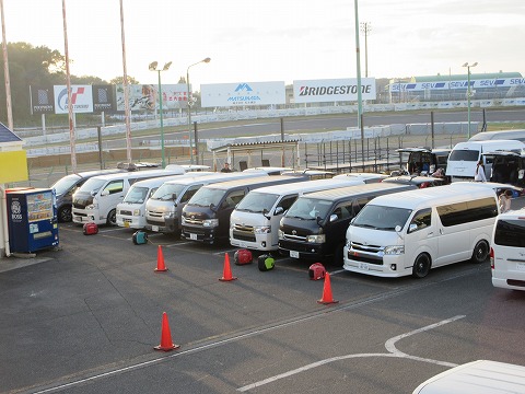 6:04 いつもの場所ではない いつも駐めるS字裏に駐めようと思ったら、空いてなかった。 ので、ハイエースは最終コーナー側にある1〜11番のピット裏のパドック空いていたので、そこに駐めました。 コースインゲートは近いよ。 |