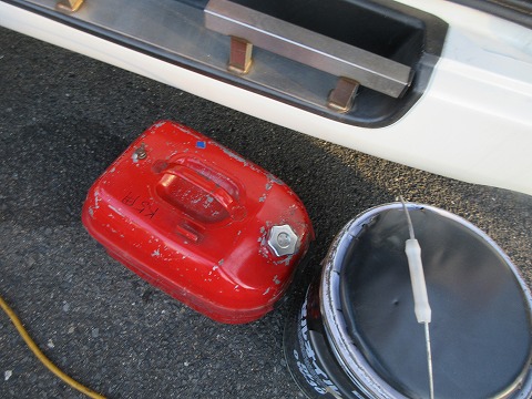 7:10 ガソリンを買ってきた 走行券を買ったので、次に携行管にガソリンを買ってきました。 いつも通り2走行分の12リットル。 |