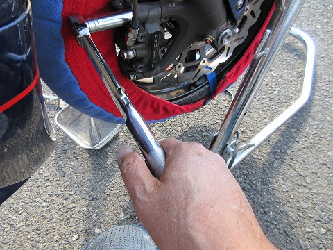 9:06 締め付け 交換しました。 ブレーキキャリパーを、トルクレンチを使って締め付け。 反対側もね。 |