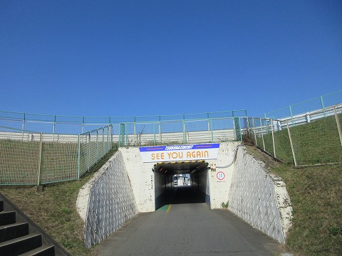 11:37 撤収 無事、モツ定も食べたので帰ります。 帰りも1コーナー下の地下トンネルをくぐって。 だって、コース走行中は、車両の出入りをするのはここしかありませんから。 |