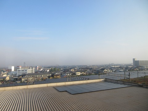 部屋に戻り、窓から外を眺めると、すごい霧です。