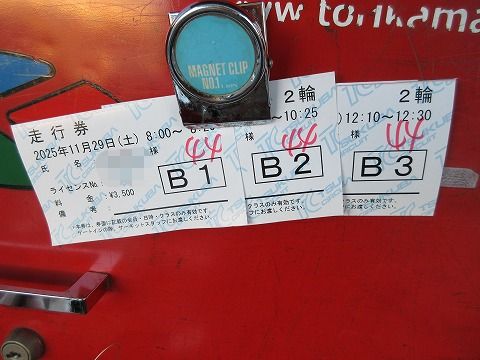 7:01 走行券を買ってきた 今日はB枠(1分2秒〜8秒未満)が3走行あったので、3走行全部買っちゃいましたよ。(笑) 1本目はいつも通り、朝一番の8時からです。 |