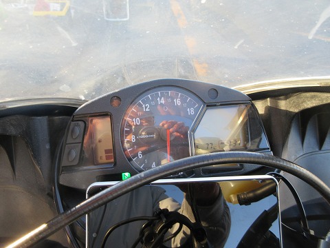 7:42 暖気して ライダース ブリーフィングが終わったらCBRの所に戻って、エンジンを暖気。 寒いのでしっかりエンジンを温めておきます。 |