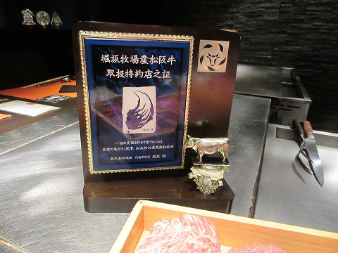 18:08 松阪牛の証し 今日提供される肉が間違いなく”松阪牛”ですよ。 の証し。 「松阪牛、食べたよ!」って言えるよう、とりあえず写真に撮っておこう。(笑) |