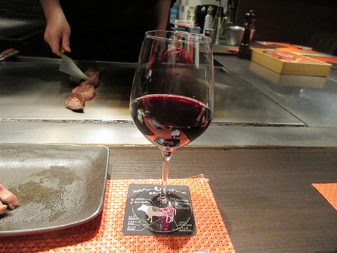18:40 赤ワインで グラスが空いたので、次はやっぱり肉料理なので赤ワインにしました。 グラスが置かれているコースターには、牛の部位が書いてあります。 不勉強の自分でも牛のどの部分だかわかりますね。 |