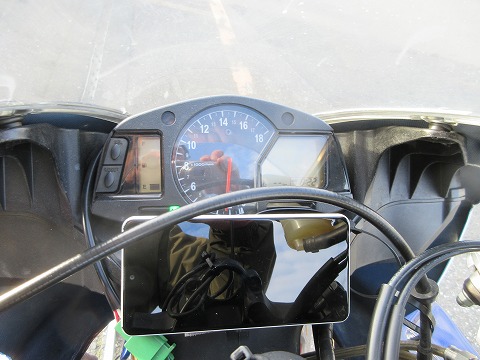 8:55 走行5分前 走行15分前になったら、ライディング ウェアに着替えます。 走行5分前になったので、エンジンに火を入れて走行前の暖気。 暖気をしている間に、タイヤの空気圧を確認して調整しておきます。 |
