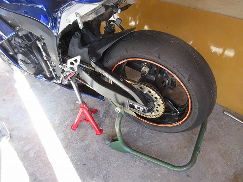 9:56 動かせない リヤサスペンションを外した状態では、スタンドは外せないので、動かせません。 このままの状態で放置です。 動かせないのは不便なので、サスペンションの代わりになるものを付けようと思います。 ちょっと、ホームセンターに買出しに行ってきます。 |
