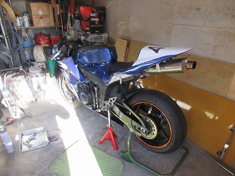 9:54 車庫の中で 2019年の3月に購入したCBR600RRですが、購入から5年経った昨シーズンのオフはエンジンのオーバーホールをしました。 今シーズンのオフは、前後のサスペンションのオーバーホールをすることにしました。 冬休みの最終日の1月4日(日)、まずはリヤサスペンションの取り外し作業から始めます。 作業は狭いけど車庫の中で。 自宅前は結構な坂なので、写真にあるステップ スタンドでバイクを止めておくのは不安定です。 なので、車庫の中は大体平なので。 |