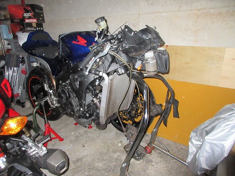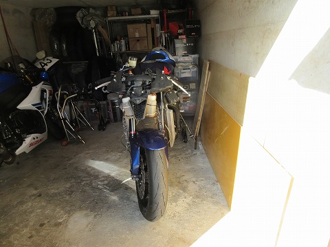 12:28 CBRは逆向きに 冷却水が抜けたので、CBRを車庫に入れます。 この後はフロント フォークの取り外し。 奥で作業するのは狭いので、頭を外に向けて、普段とは逆向きに止めておきます。 今日は午後から、姉家族と母親を含めて会食があるので、このままで出掛けてきます。 |