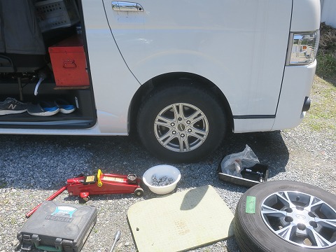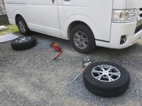 夏タイヤに交換 | GWの前半、29日(月)、やり残していたハイエースのタイヤをスタッドレスから夏タイヤに入れ替えることにしました。 |